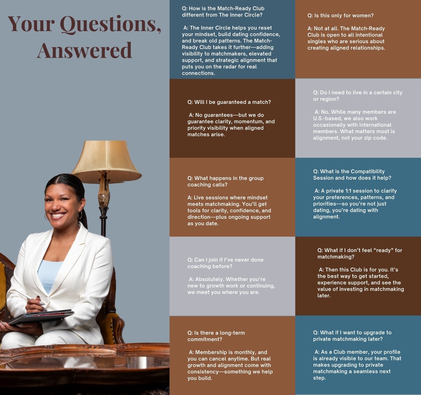Schedule your private Compatibility Session to clarify your vision, preferences, and patterns—and complete your Match-Ready profile